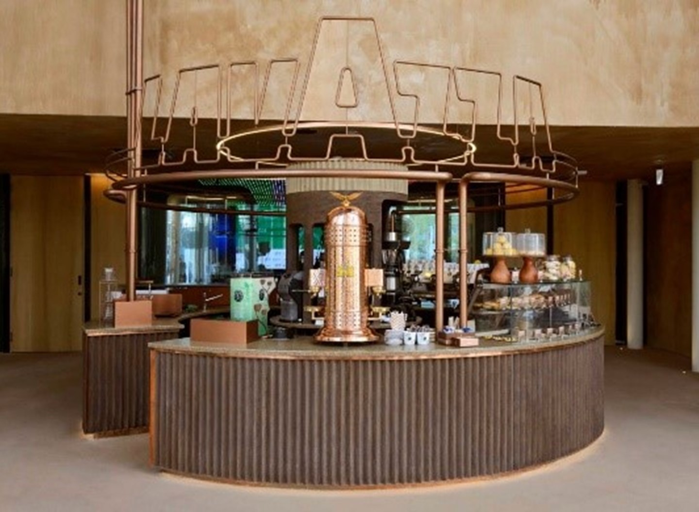 The Solar coffee garden project: inaugurated in the Expo Dubai 2020, the stand features included Moka-inspired water heating using solar energy and countertops made from coffee grounds and spoiled beans.